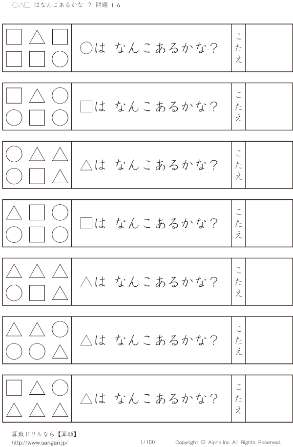 ○△□はなんこかな?1-6-[プリント一覧] [問題]001/100