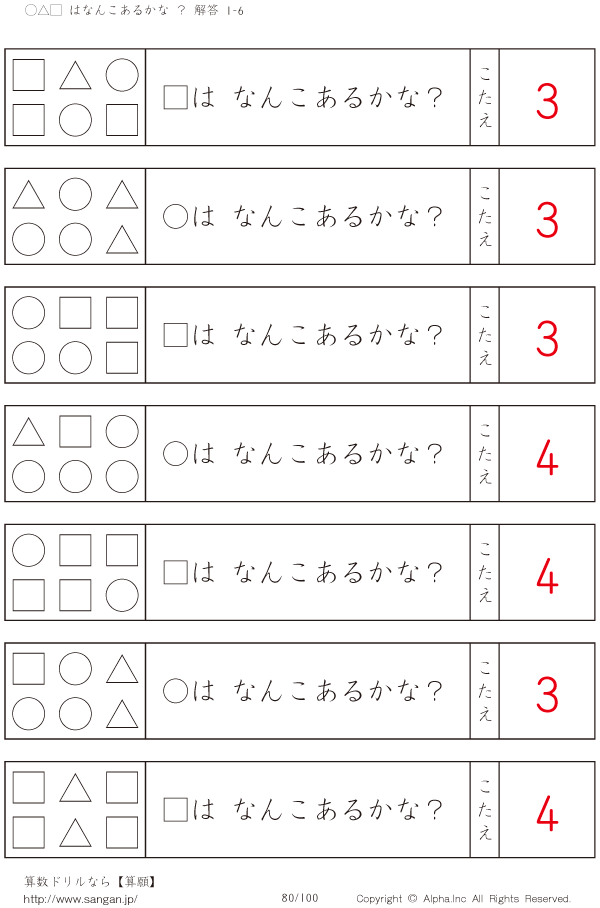 ○△□はなんこかな?1-6-[プリント一覧] [解答]080/100
