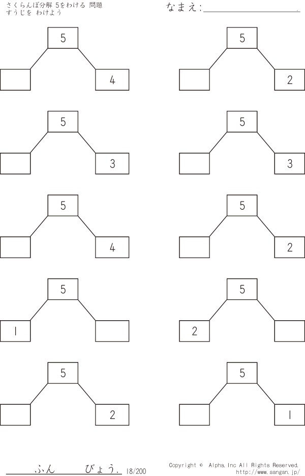 さくらんぼ分解 すうじをわけよう 5をわける [問題]018/200