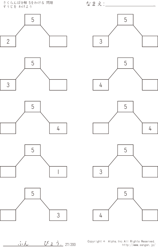 さくらんぼ分解 すうじをわけよう 5をわける [問題]027/200