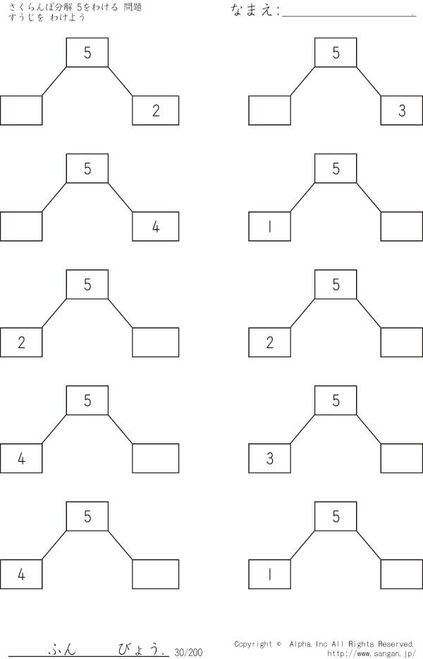 さくらんぼ分解 すうじをわけよう 5をわける [問題]030/200