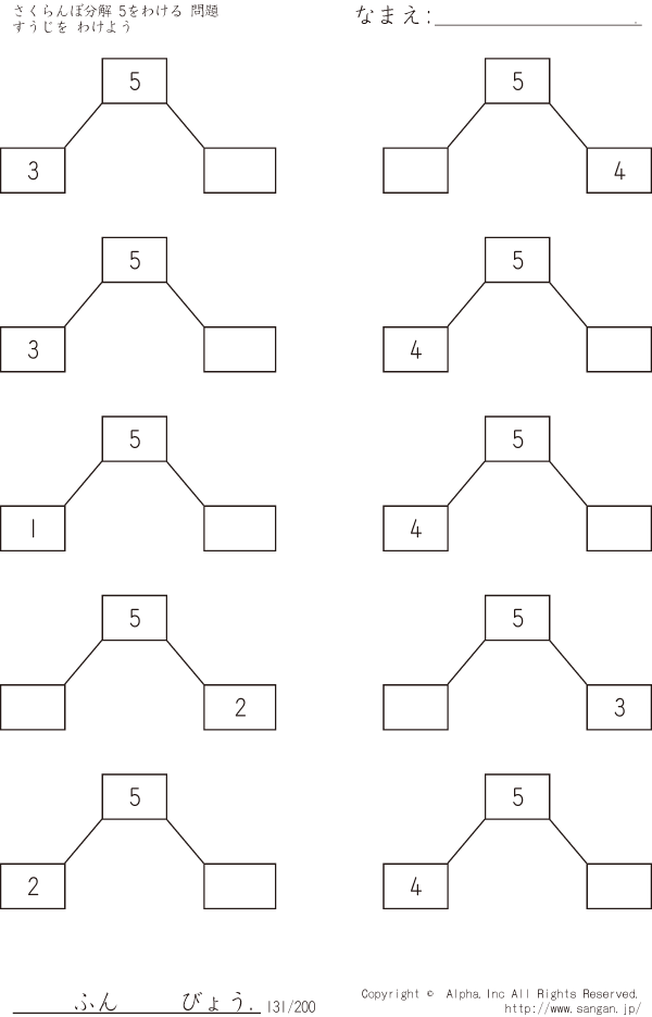 さくらんぼ分解 すうじをわけよう 5をわける [問題]131/200
