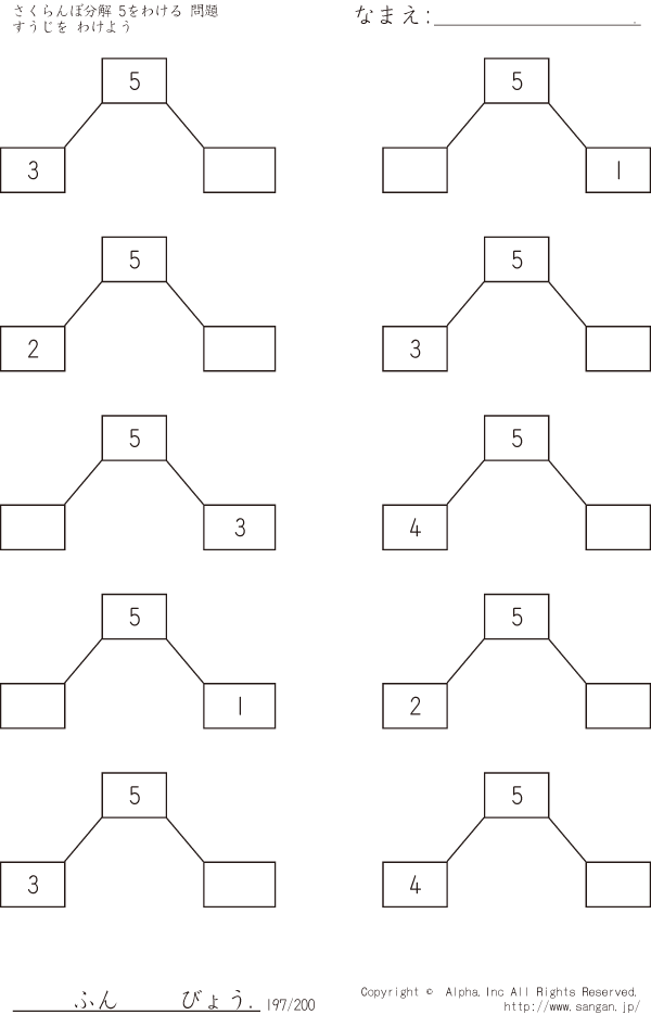 さくらんぼ分解 すうじをわけよう 5をわける [問題]197/200