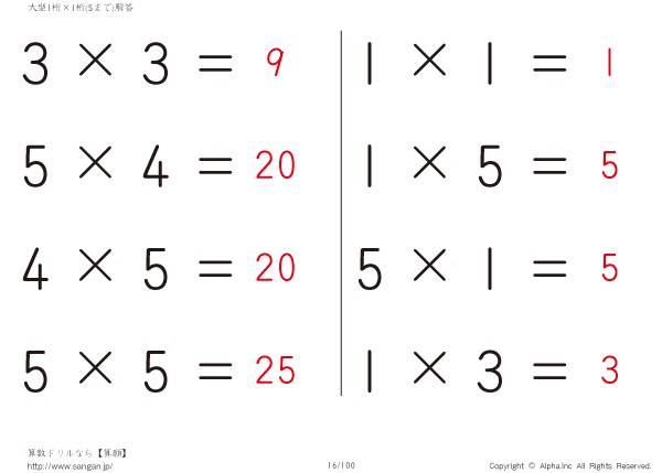 大型1桁の掛け算(5まで)の問題解答ガイド