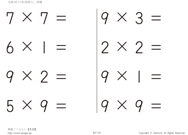 大型1桁の掛け算(制限なし)の問題解答ガイド