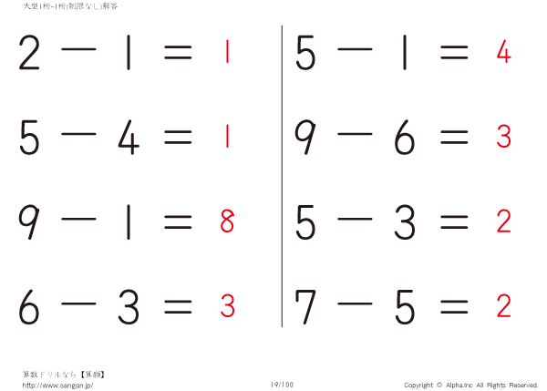 大型1桁の引き算(制限なし)の問題解答ガイド