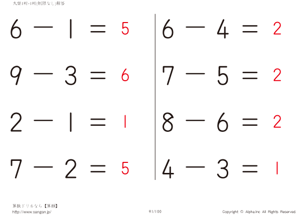 大型1桁の引き算(制限なし) [解答]091/100