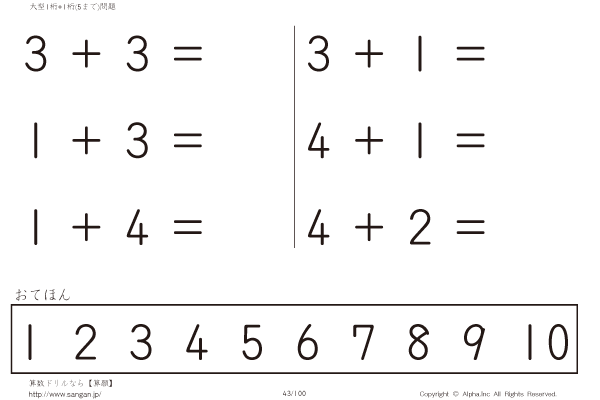 大型1桁の足し算(5まで) [問題]043/100