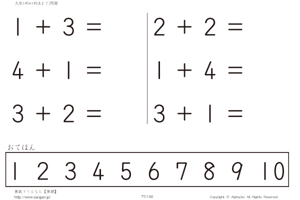 大型1桁の足し算(5まで) [問題]077/100