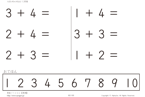 大型1桁の足し算(5まで) [問題]082/100