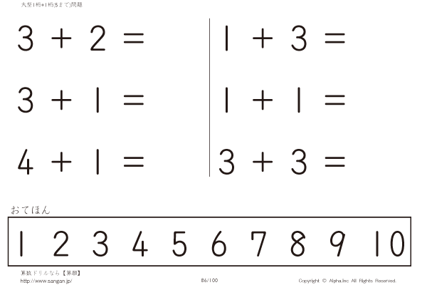 大型1桁の足し算(5まで) [問題]086/100