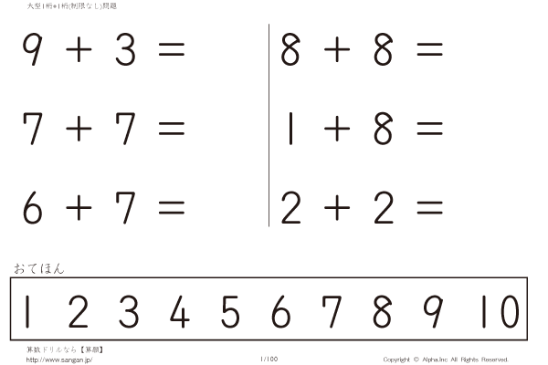 大型1桁の足し算(制限なし)の問題解答ガイド