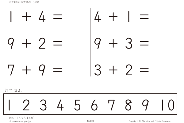 大型1桁の足し算(制限なし)の問題解答ガイド