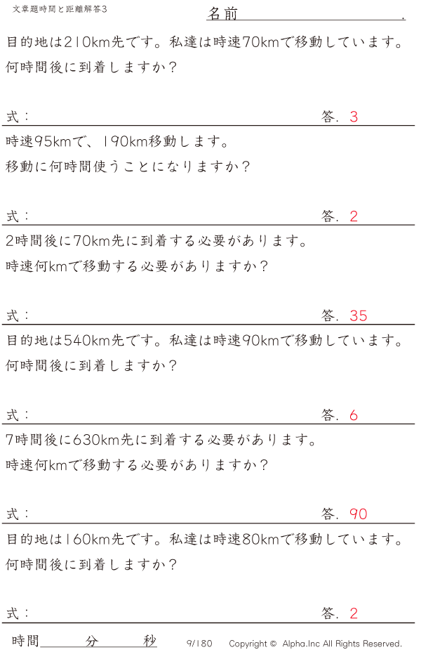 時間と距離の文章題3:時速120kmまで・5km単位 [解答]009/180