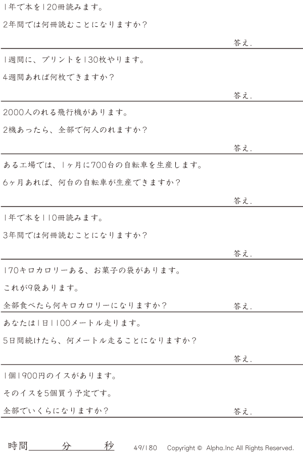 大きい数値の掛け算文章題2 [問題]049/180