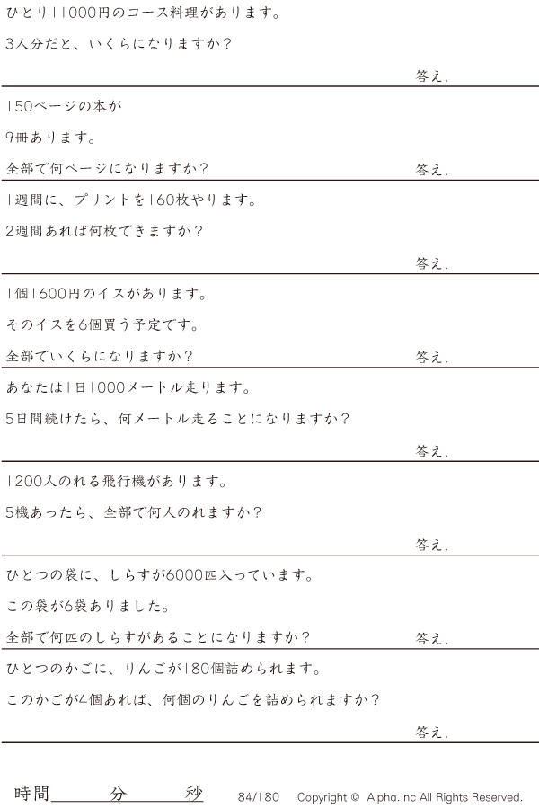 上記のボタンから「大きい数値の掛け算文章題2」の算数数学ドリル・計算ドリル(PDFプリント)がダウンロードできます。個人利用は無料です(家庭以外での配布は有料です)。