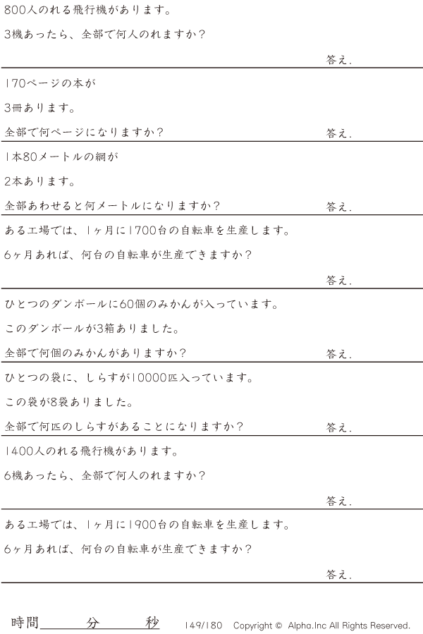 大きい数値の掛け算文章題2 [問題]149/180