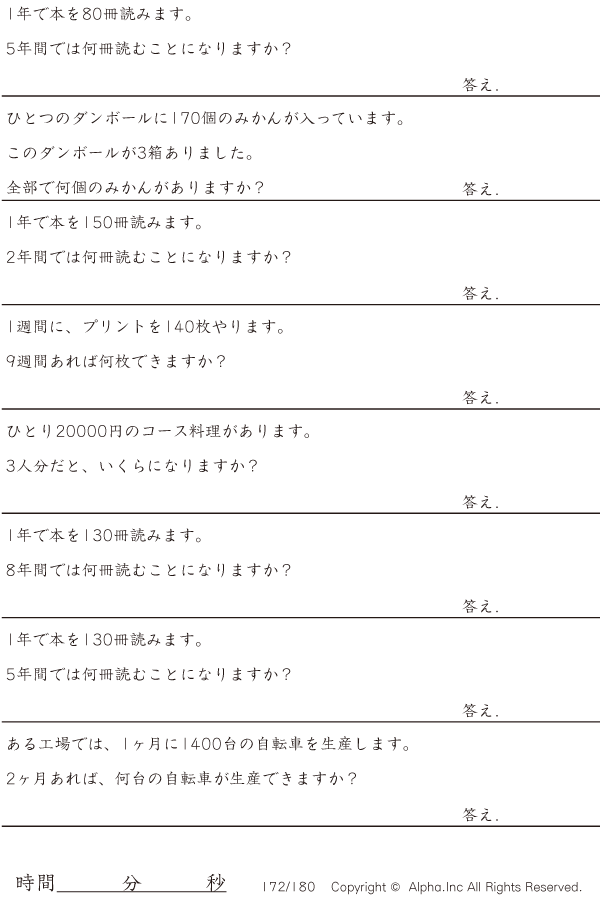 大きい数値の掛け算文章題2 [問題]172/180