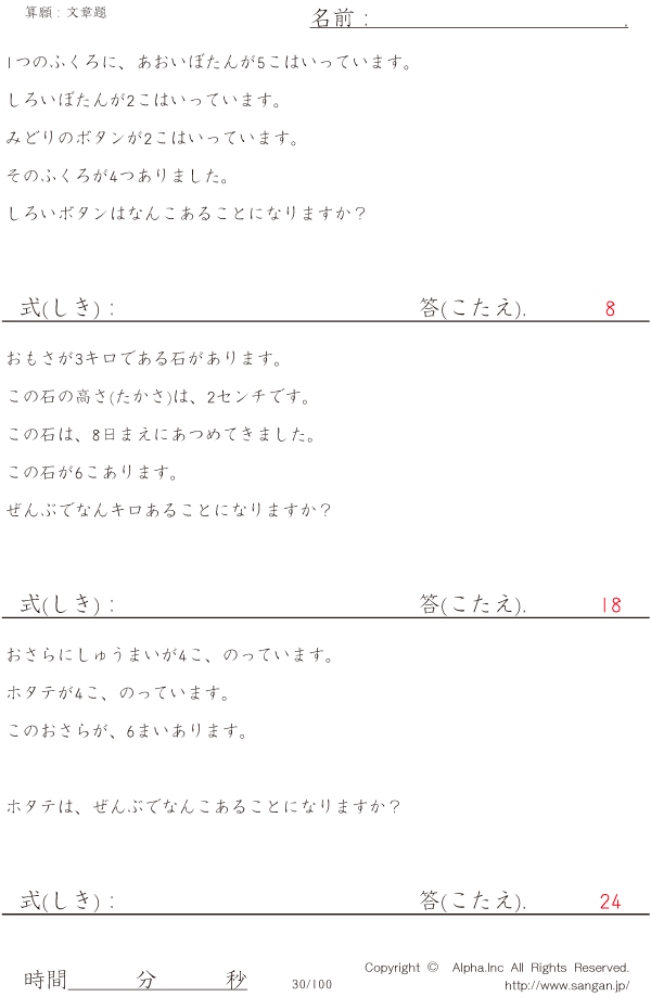 上記のボタンから「1桁の掛け算の文章題・情報の取捨」の算数数学ドリル・計算ドリル(PDFプリント)がダウンロードできます。個人利用は無料です(家庭以外での配布は有料です)。