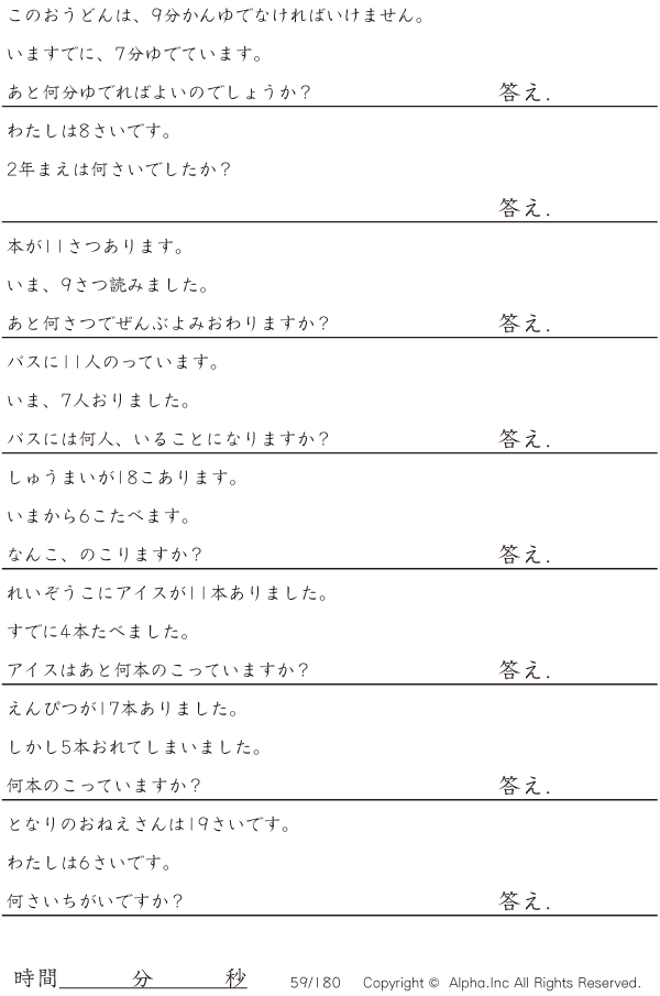 1桁の引き算の文章題-2-20まで [問題]059/180