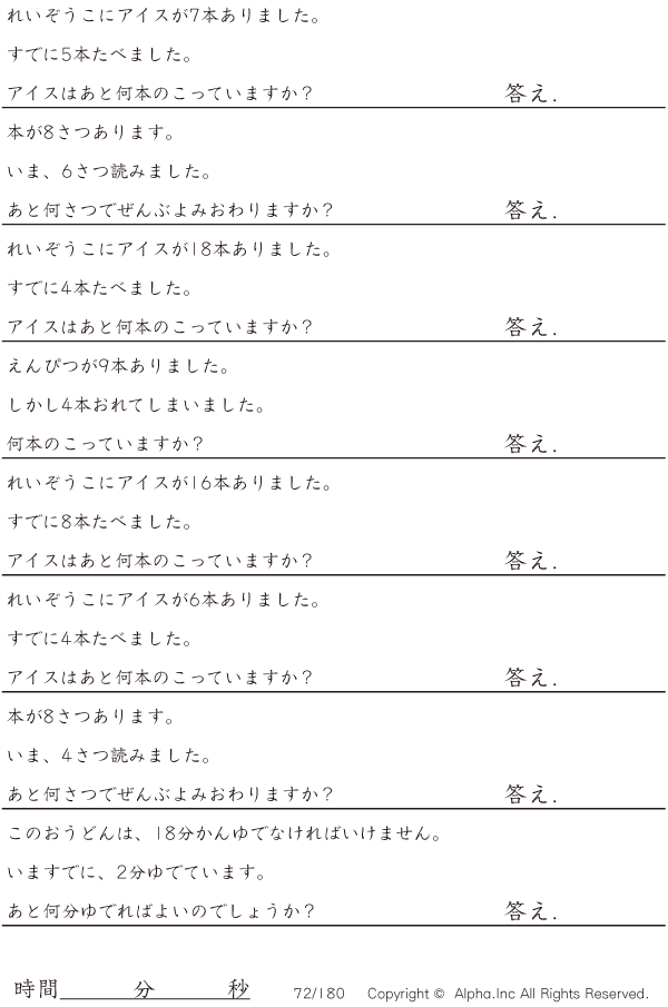 1桁の引き算の文章題-2-20まで [問題]072/180