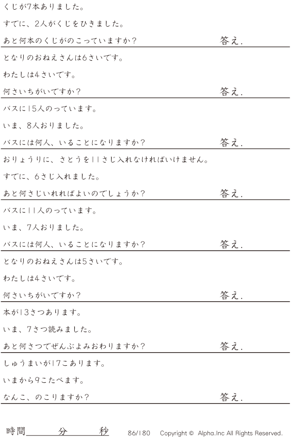 1桁の引き算の文章題-2-20まで [問題]086/180