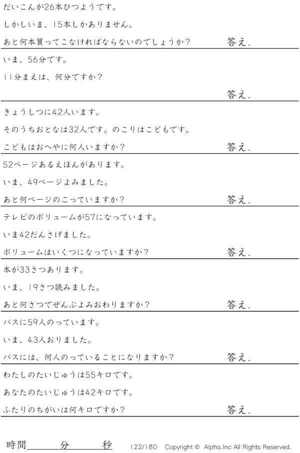 2桁の引き算の文章題 [問題]122/180
