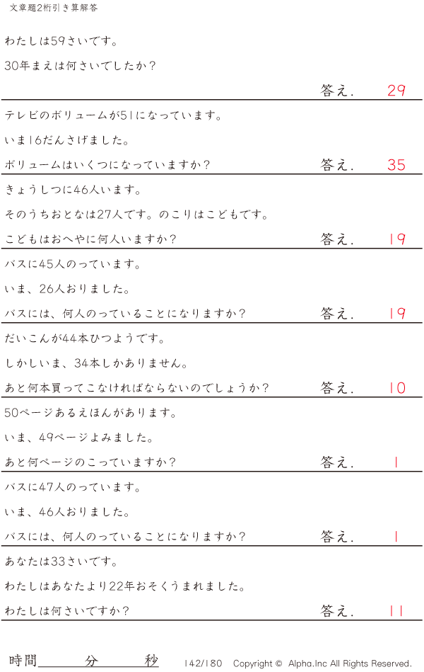 2桁の引き算の文章題 [解答]142/180