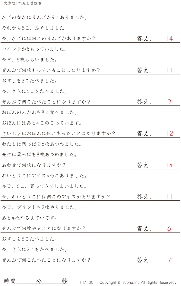 1桁の足し算の文章題 [解答]011/180