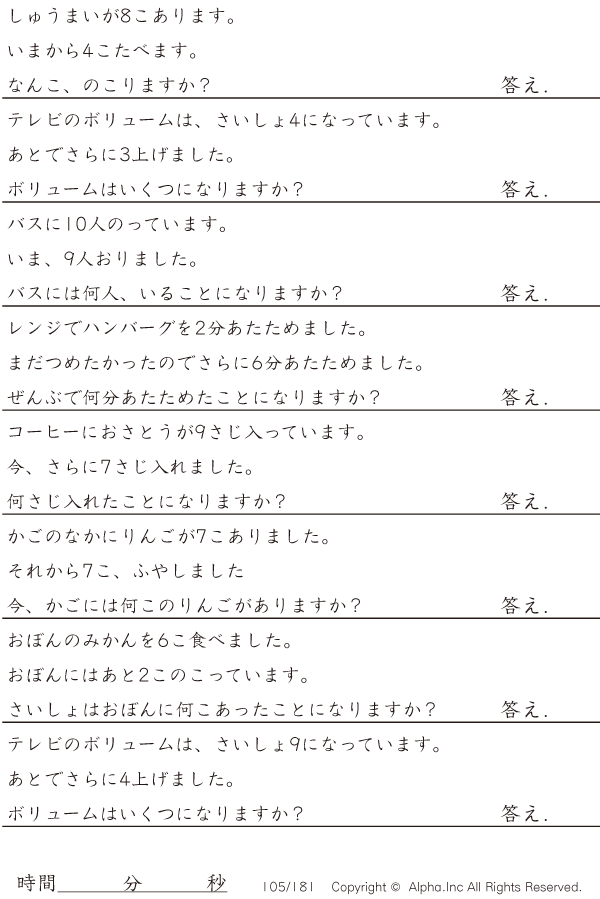 上記のボタンから「1桁の足し算と引き算」の算数数学ドリル・計算ドリル(PDFプリント)がダウンロードできます。個人利用は無料です(家庭以外での配布は有料です)。