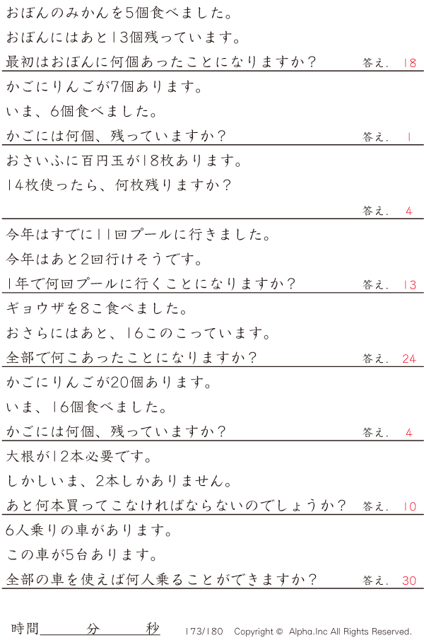 上記のボタンから「足し算と引き算と掛け算」の算数数学ドリル・計算ドリル(PDFプリント)がダウンロードできます。個人利用は無料です(家庭以外での配布は有料です)。
