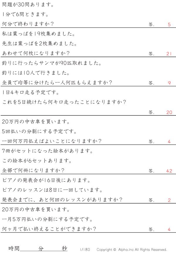 足し算と引き算と掛け算と割り算 [解答]001/180