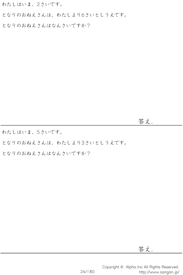 1桁のテープ図(足し算と引き算・文章題) [問題]024/180