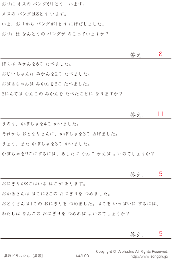 算数文章題 足したり 引いたり@4-[問題リスト] [解答]044/100