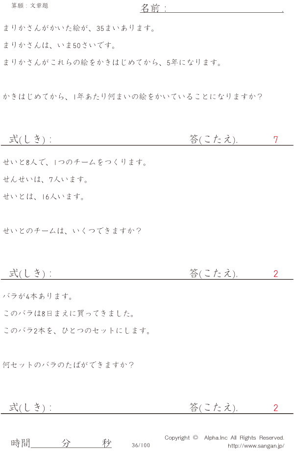 文章題1桁割り算-情報の取捨 [解答]036/100