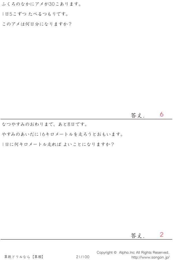 文章題テープ図割り算(掛け算) [解答]021/100