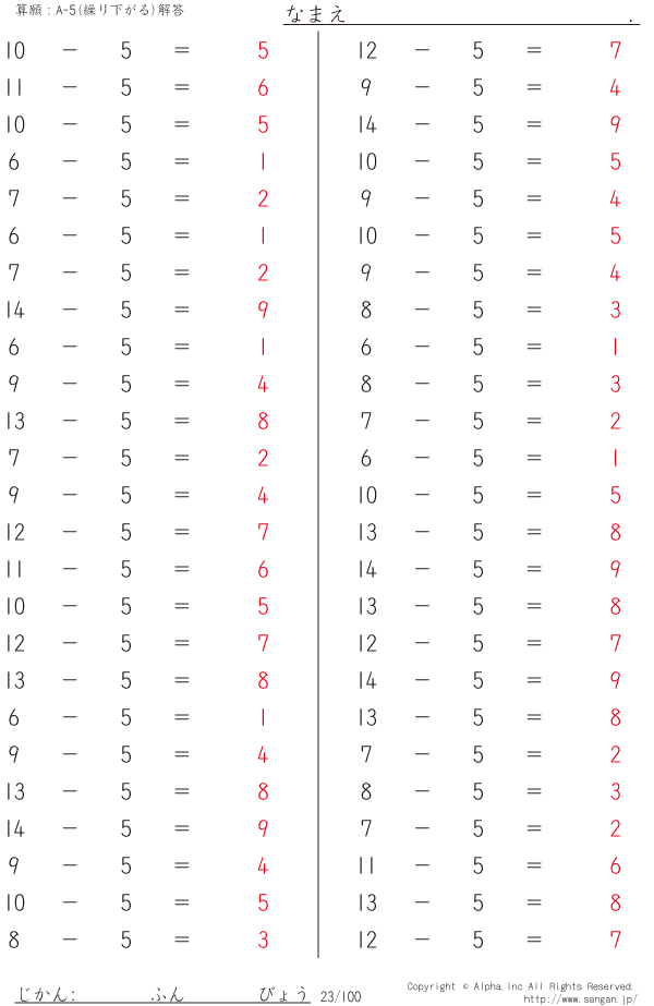 A-5繰り下がりあり [解答]023/100