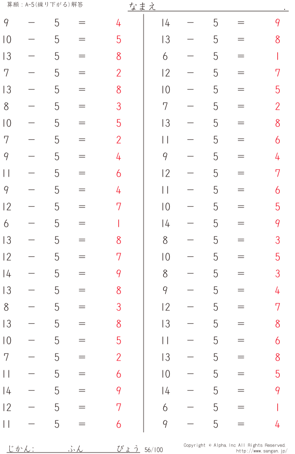 A-5繰り下がりあり [解答]056/100