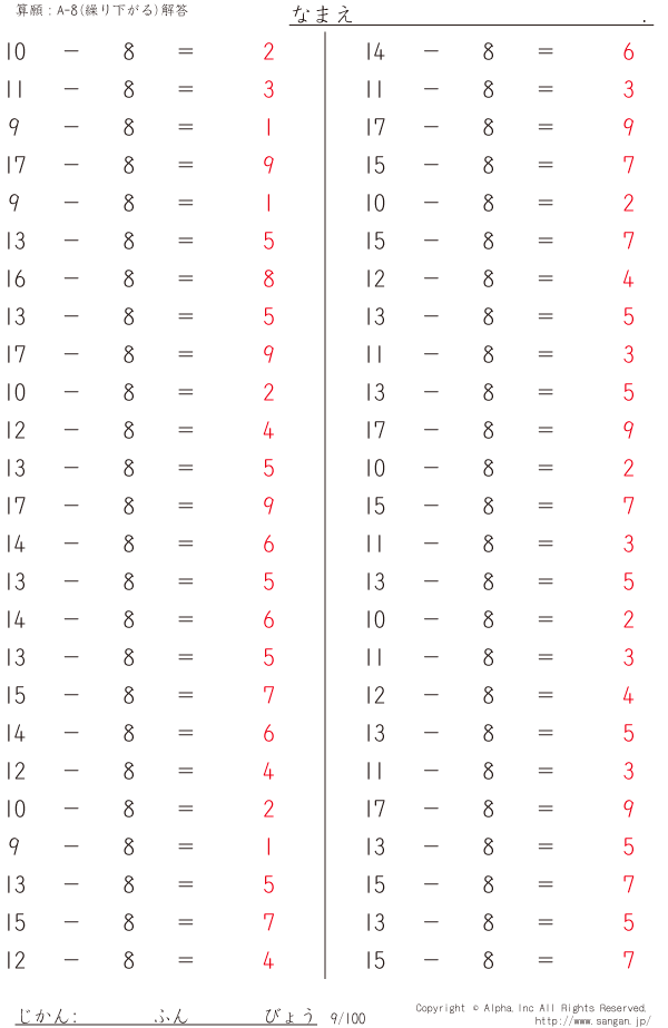 A-8繰り下がりあり [解答]009/100