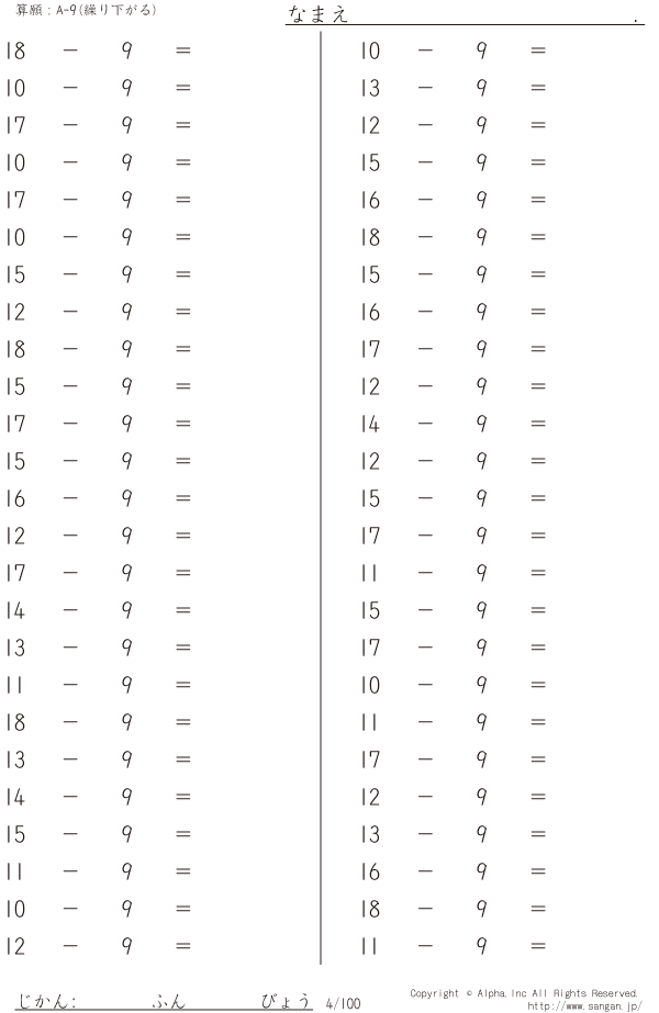 A-9繰り下がりあり [問題]004/100