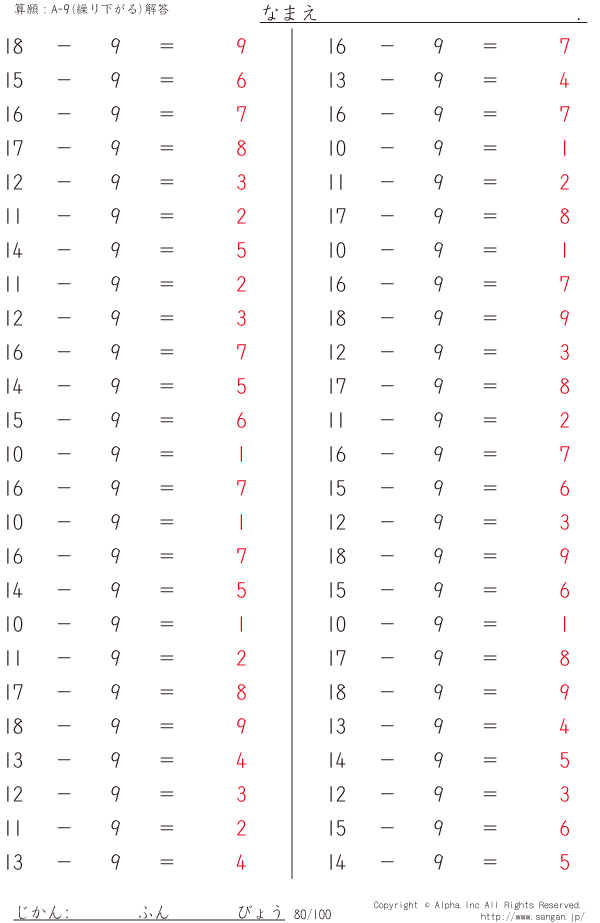 A-9繰り下がりあり [解答]080/100