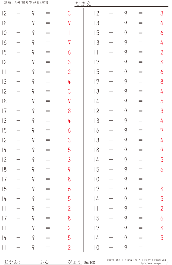 A-9繰り下がりあり [解答]086/100