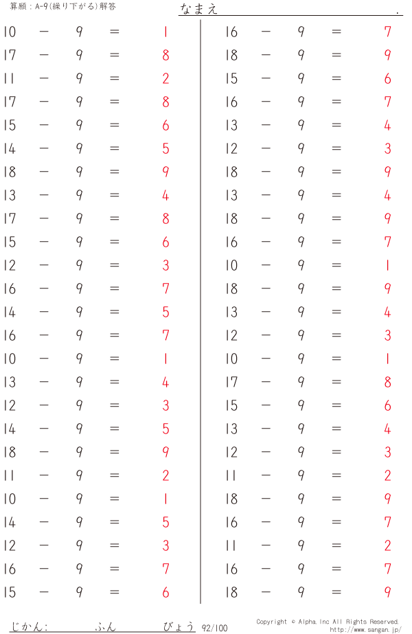 A-9繰り下がりあり [解答]092/100