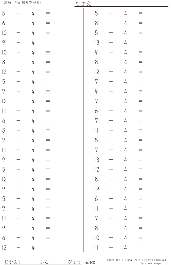 A-4…繰り下がりあり [問題]016/100