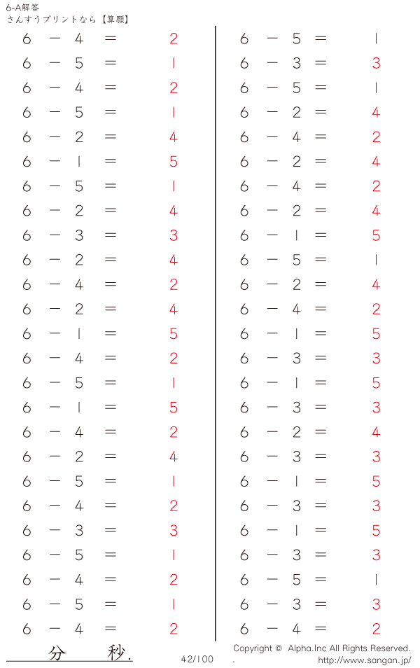 6-A…1桁の数値を1桁の数値で引く [解答]042/100