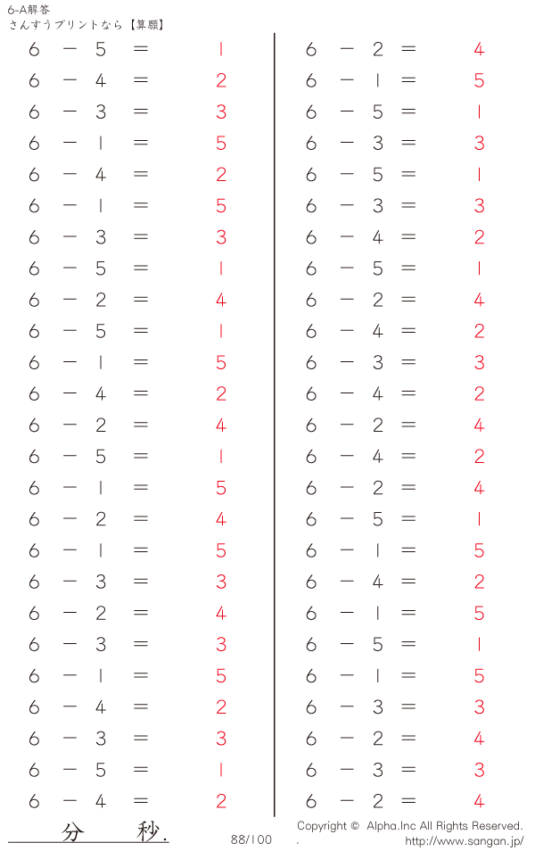 6-A…1桁の数値を1桁の数値で引く [解答]088/100
