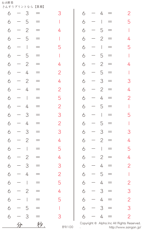 6-A…1桁の数値を1桁の数値で引く [解答]089/100