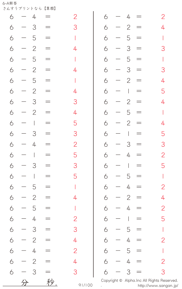 6-A…1桁の数値を1桁の数値で引く [解答]091/100