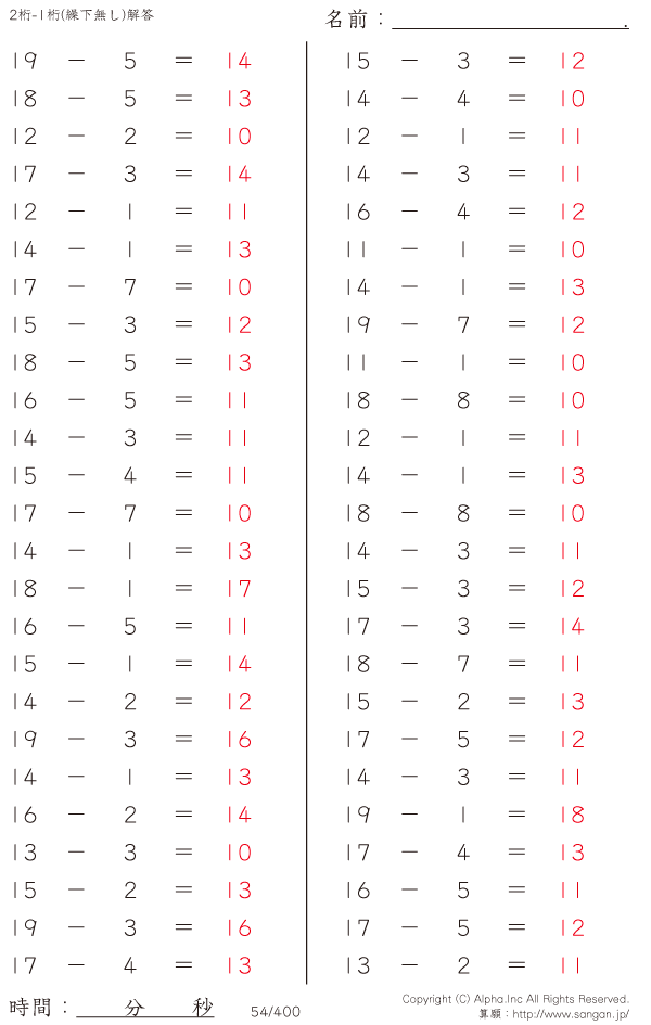 20未満-1桁(繰下無し) [解答]054/400