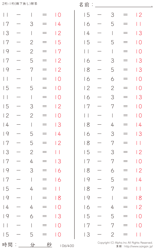 20未満-1桁(繰下無し) [解答]106/400